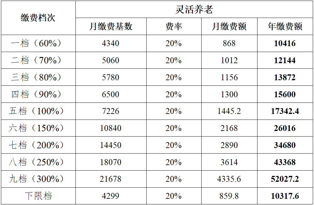 宜昌市灵活就业人员2025社保年度基本养老保险缴费档次如下: