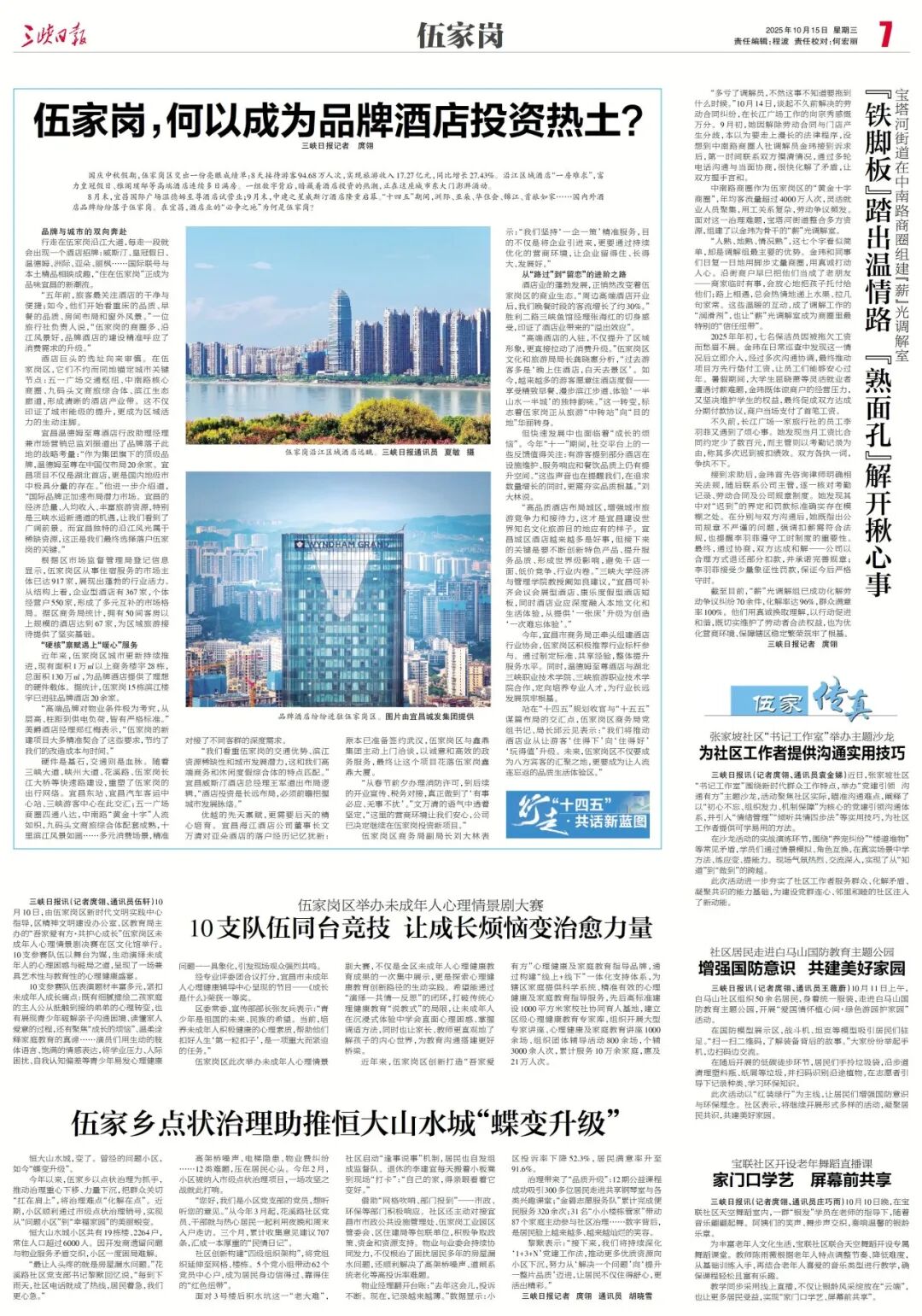 “高端酒店的入驻,不仅提升了区域形象,更直接拉动了消费升级。”伍家岗区文化和旅游局局长龚晓惠分析,“过去游客多是‘晚上住酒店,白天去景区’。如今,越来越多的游客愿意住酒店度假——享受精致早餐、漫步滨江步道、体验‘一半山水一半城’的独特韵味。”这一转变,标志着伍家岗正从旅游“中转站”向“目的地”华丽转身。