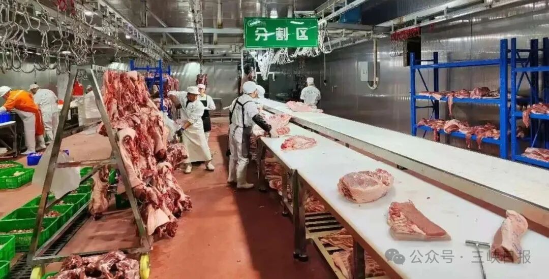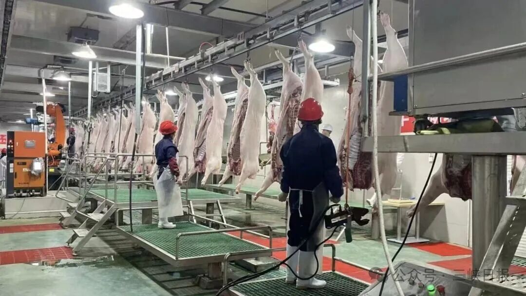 与此同时,本地企业通过提质增效,不断增强市场竞争力。在枝江市嵘昌肉联食品有限公司,精细分割车间一派繁忙景象。这家于2024年获评部级“生猪屠宰标准化建设示范单位”的企业,已成功转型。