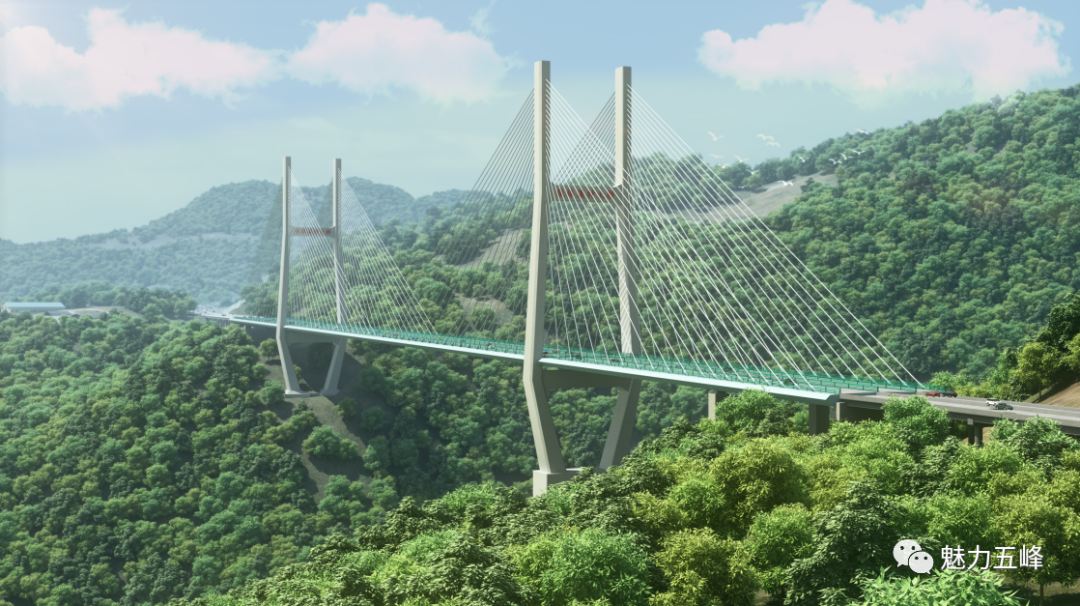 据了解,宜来高速柴埠溪特大桥由湖北交投投资,中交二航局承建,为双塔双索面钢混组合梁斜拉桥,全长1384米,主桥长904米,主跨480米;主塔设计为H型索塔,其中东岸主塔高213米,西岸主塔高167米,大桥为高速与二级公路同层共建,梁宽44.5米,在目前全世界同类型桥梁中梁宽排名第一。