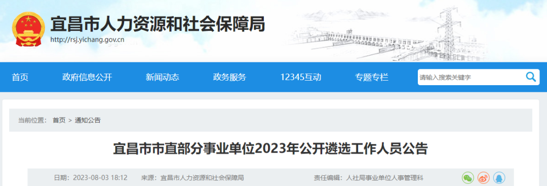 宜昌市人力资源和社会保障局网站发布
