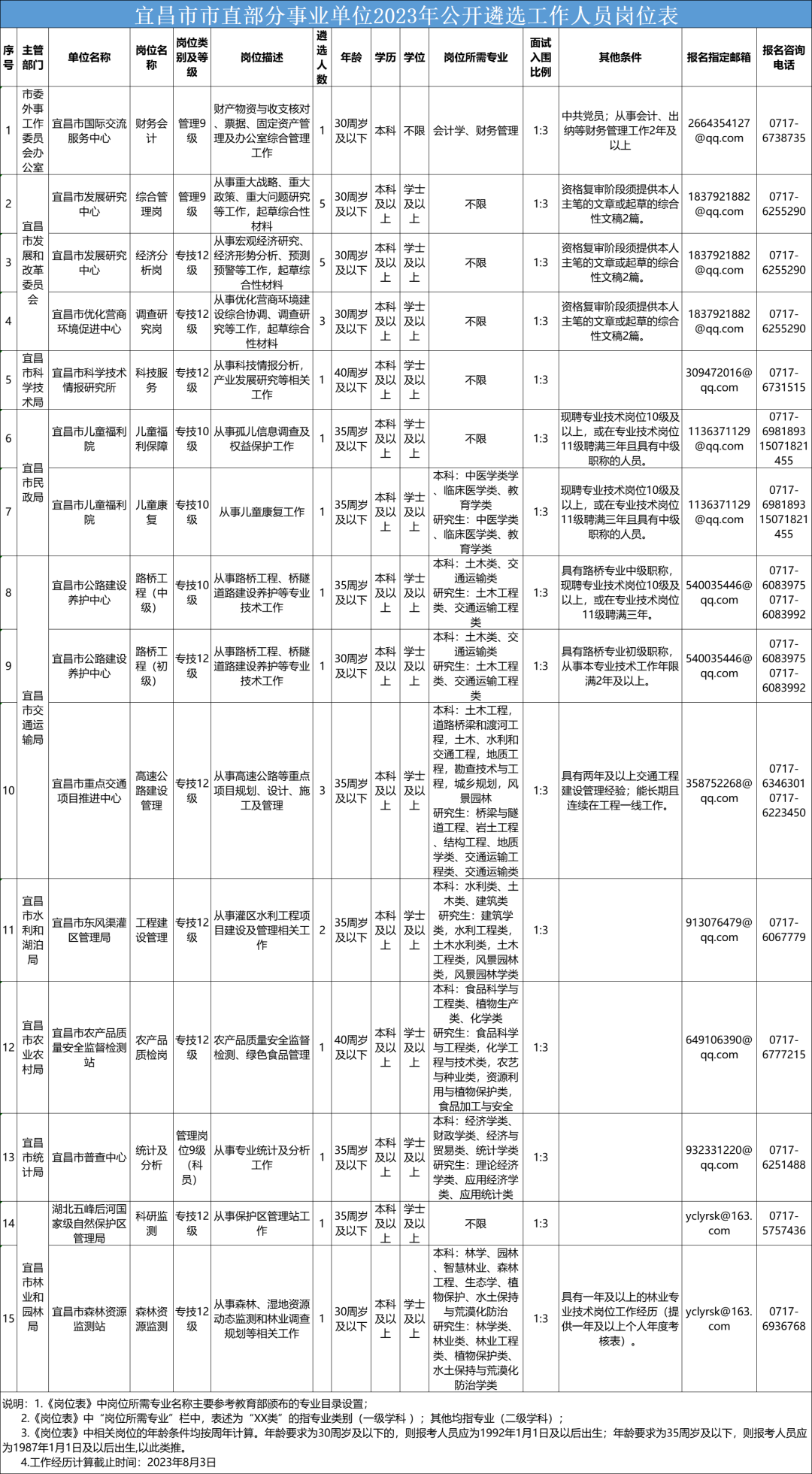 本次公开遴选涉及12个事业单位,15个岗位,共遴选28人。具体遴选单位、岗位及职数见《宜昌市市直部分事业单位2023年公开遴选工作人员岗位表》(以下简称《岗位表》)。
