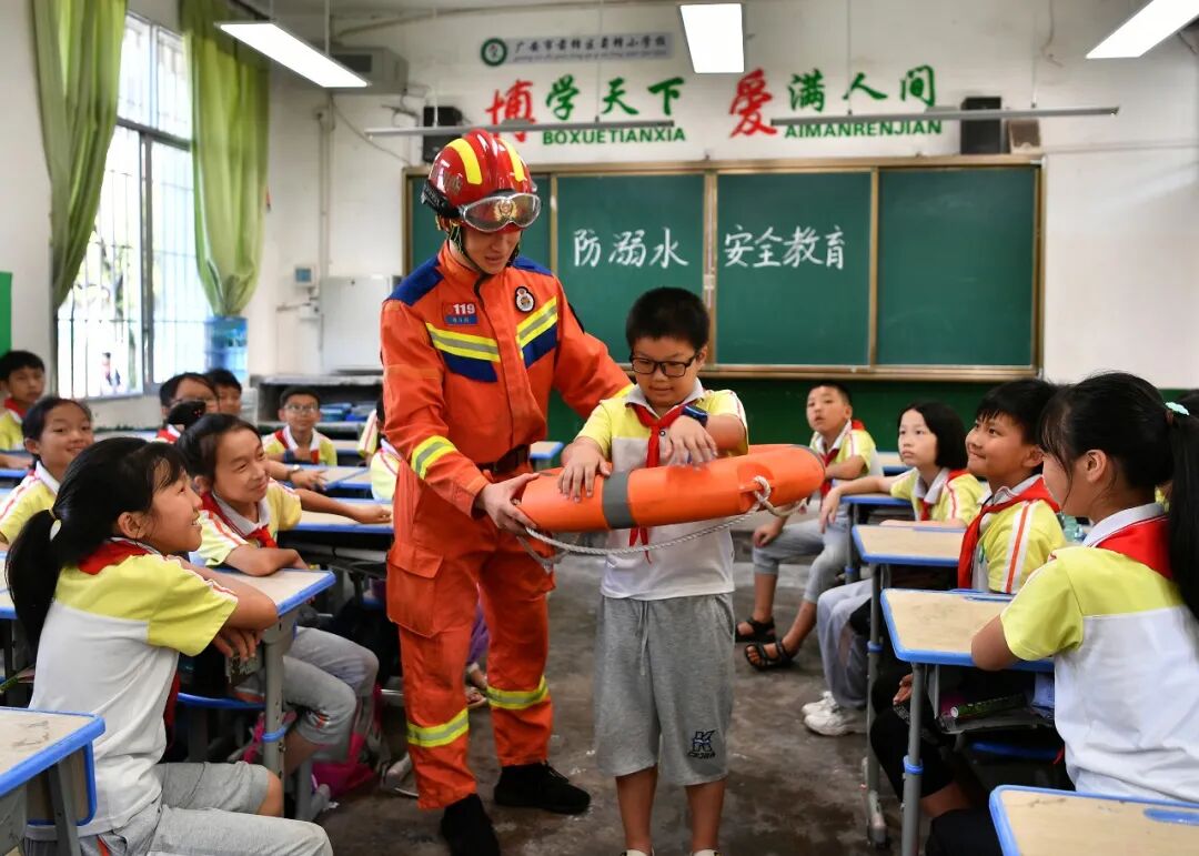 要让防溺水教育充满趣味、更易于孩子“吸收”,邀请专业队伍进校开展宣传培训不啻为一种有效方式,通过装备展示、实操演练等做到寓教于乐。