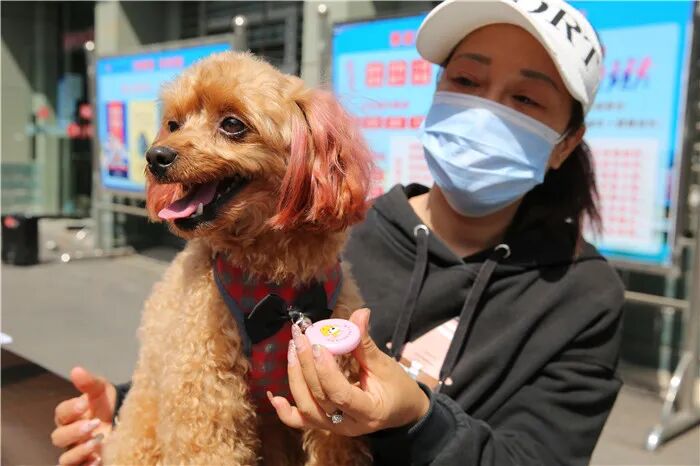 市民为自己的爱犬佩戴电子犬证。
