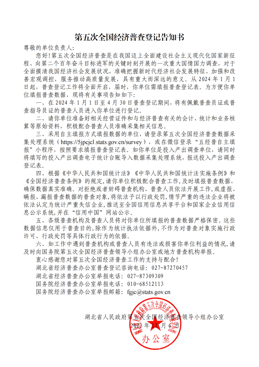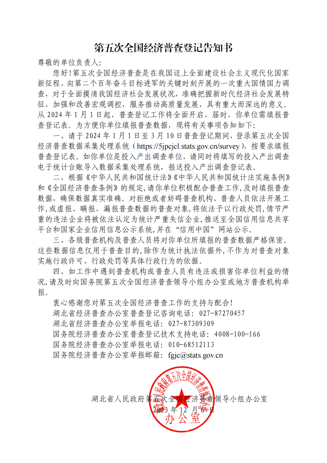 2024年1月1日起,第五次全国经济普查将全面启动现场登记工作。届时,广大普查员们将入企入户、走街访巷,为湖北省经济做全面“体检”。