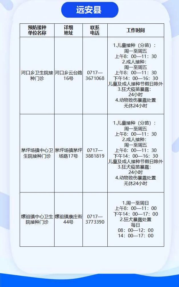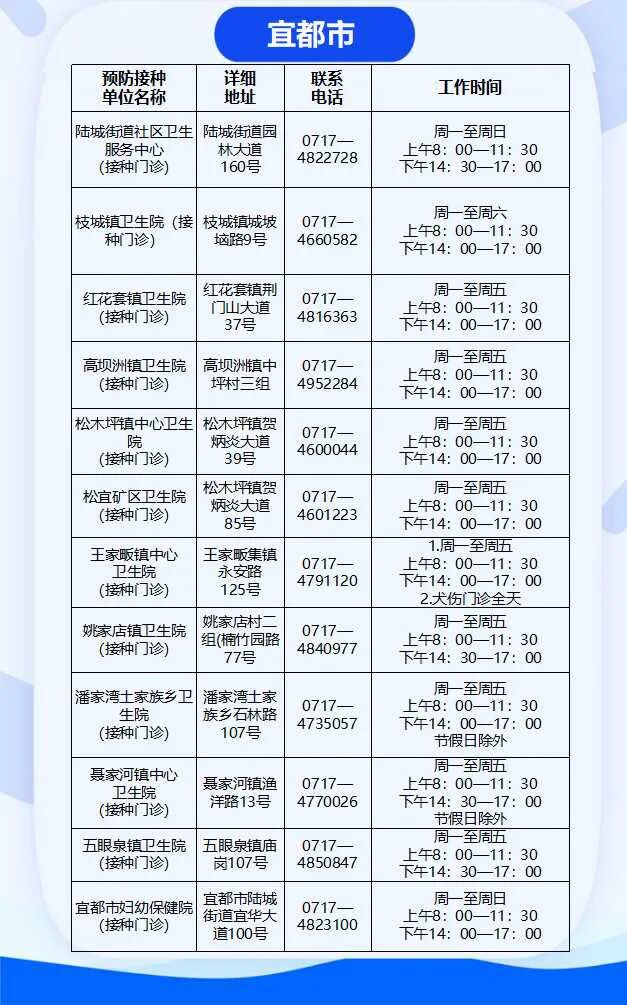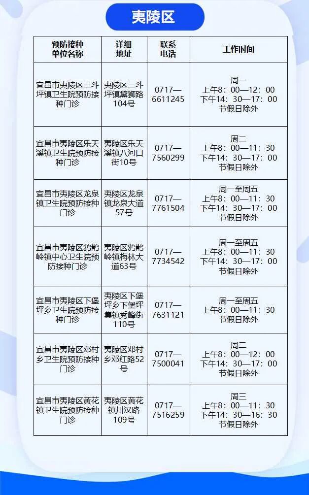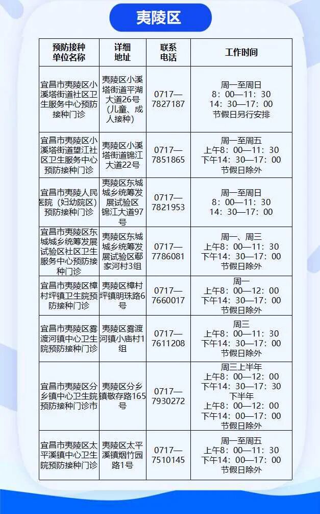 目前,宜昌市共有儿童预防接种门诊121家,分布在全市各区,方便儿童家长带着孩子就近到接种门诊来完成补种。