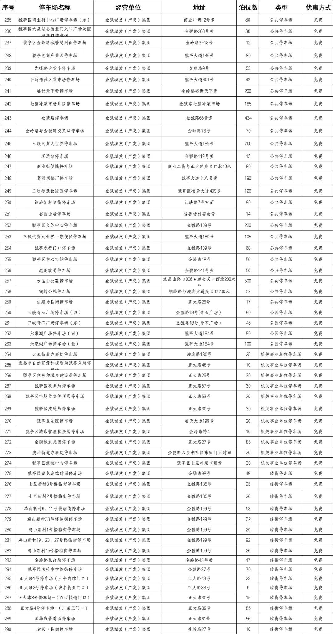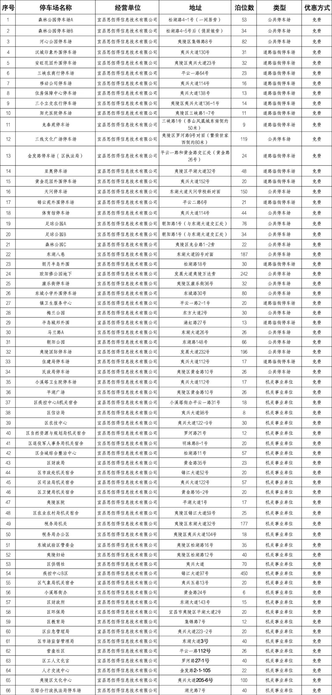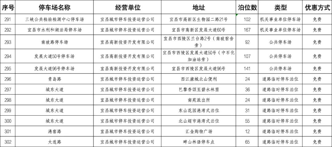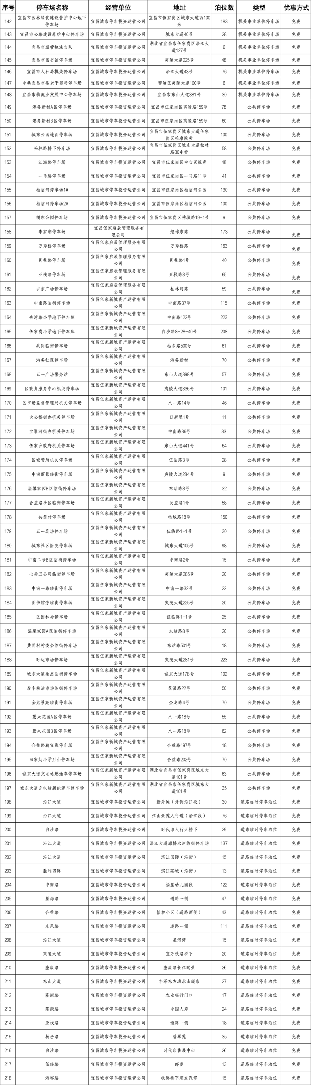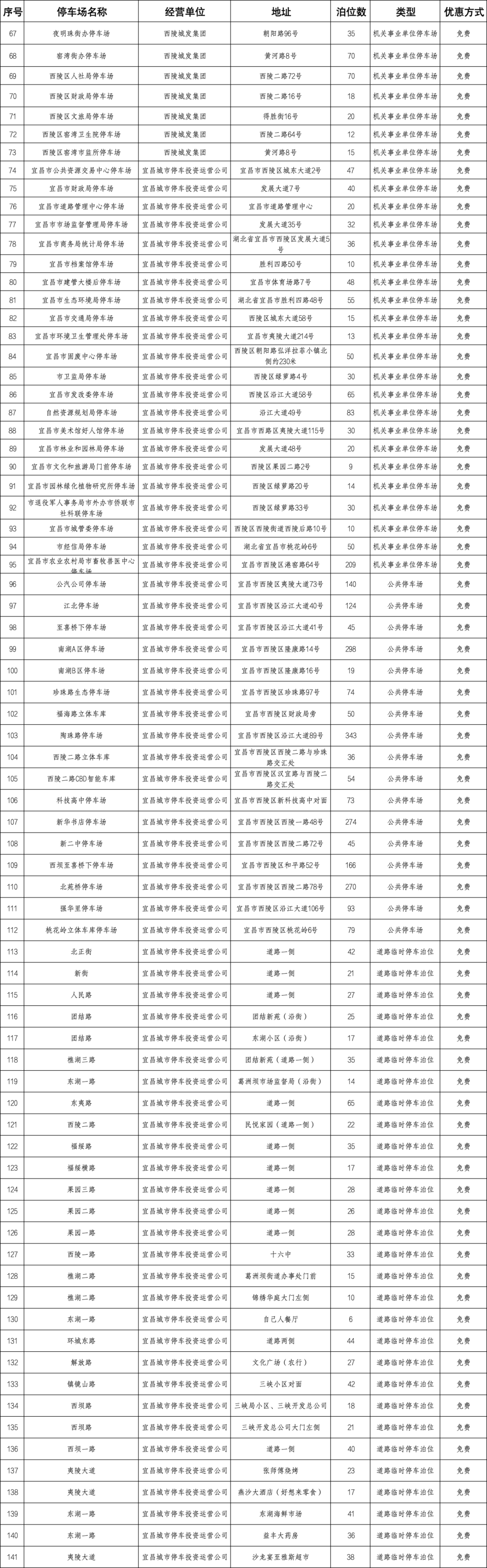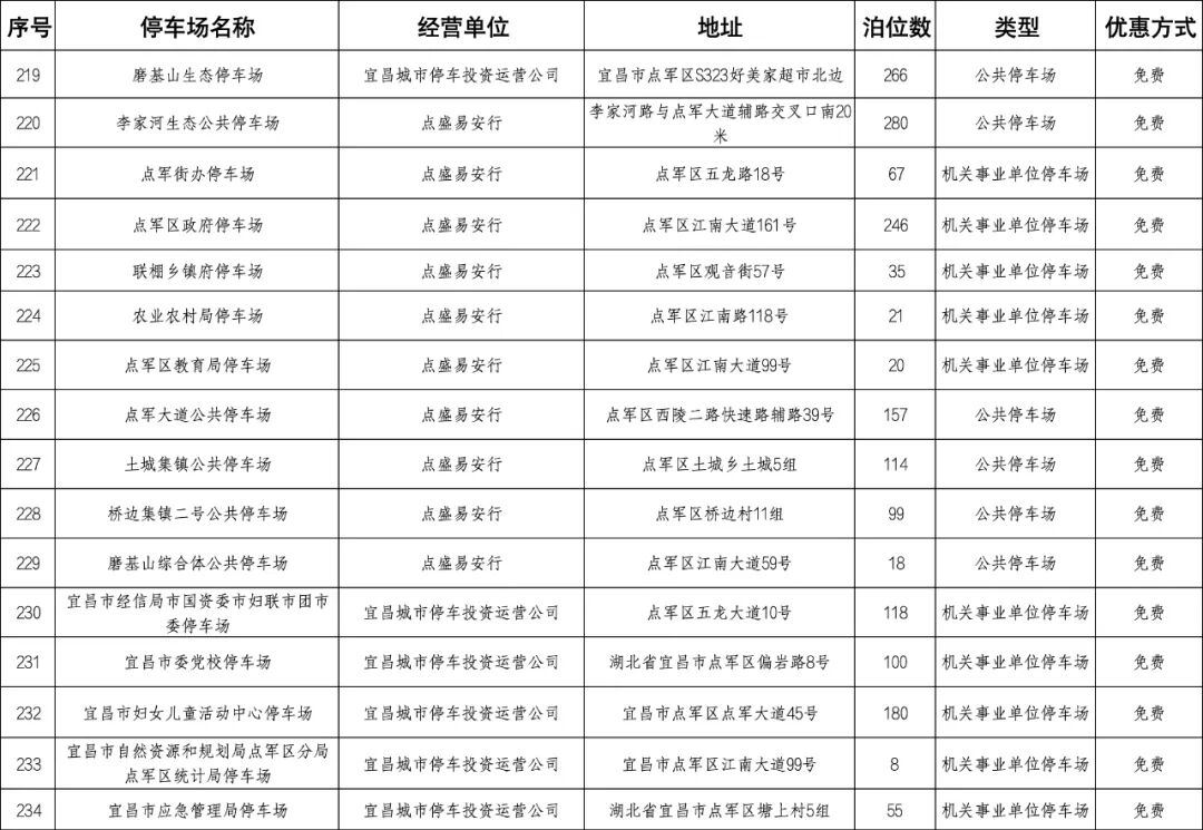 宜昌城区停车场点位明细表
