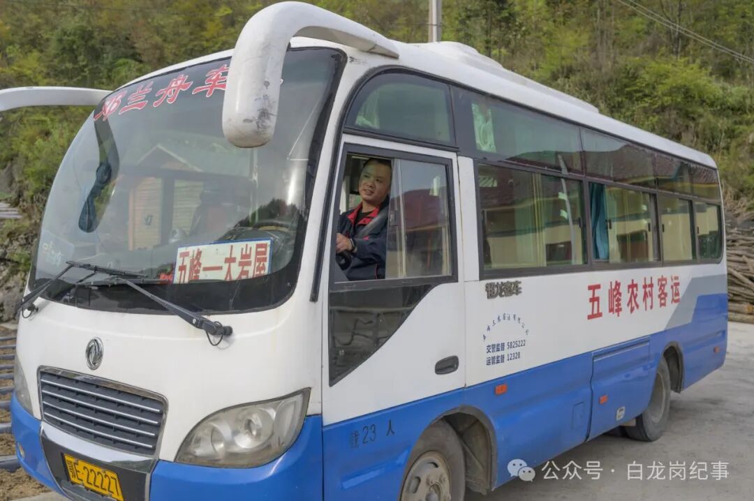 邓兰舟负责的五峰镇至麦庄村路线,山大人稀、交通不便,一路蜿蜒曲折,坡陡弯急,短短40公里山路,单程时常要跑3个小时。邓兰舟每天清晨6点出发,中午从五峰镇返回麦庄村,下午3点到达终点麦庄大岩屋后,在山顶大岩屋候车亭旁的小木屋里休息一晚。