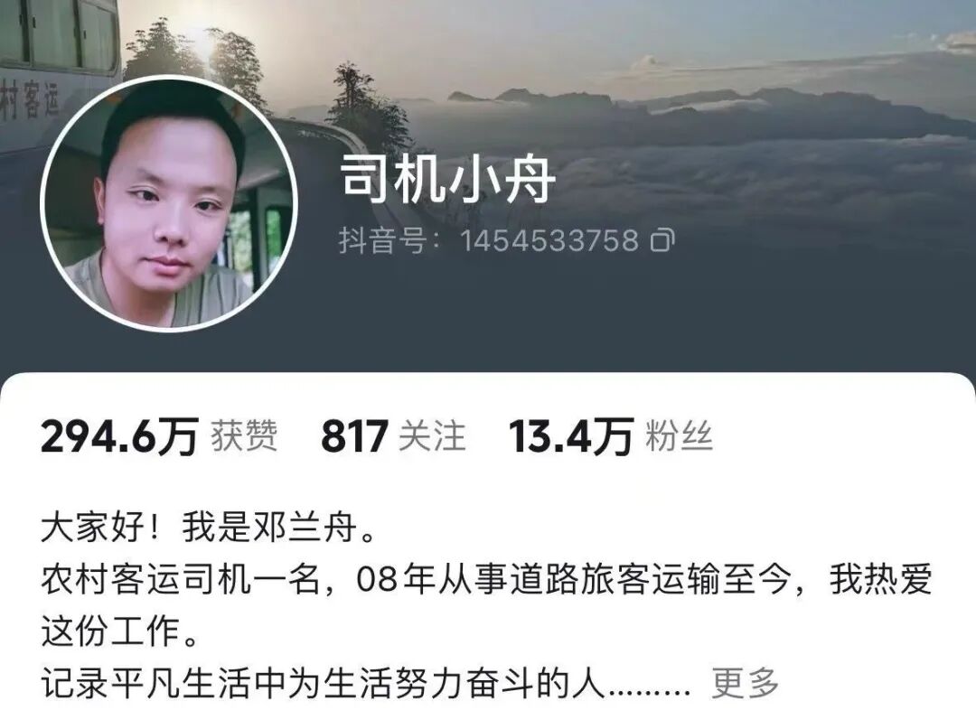 “我是一名农村客运司机,我热爱这份工作。”这是邓兰舟社交媒体账号的个人简介,他不仅认真细致地对待工作,还将客运工作的日常拍摄成短视频在互联网上发布,将山旮旯里的暖心故事分享到更广阔的世界。