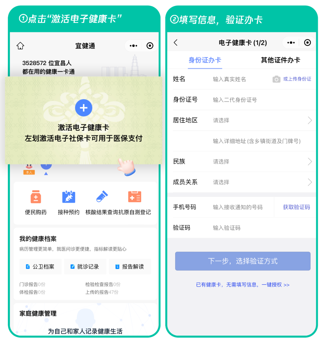 点击进入👉宜健通小程序,激活电子健康卡,按要求填写信息。