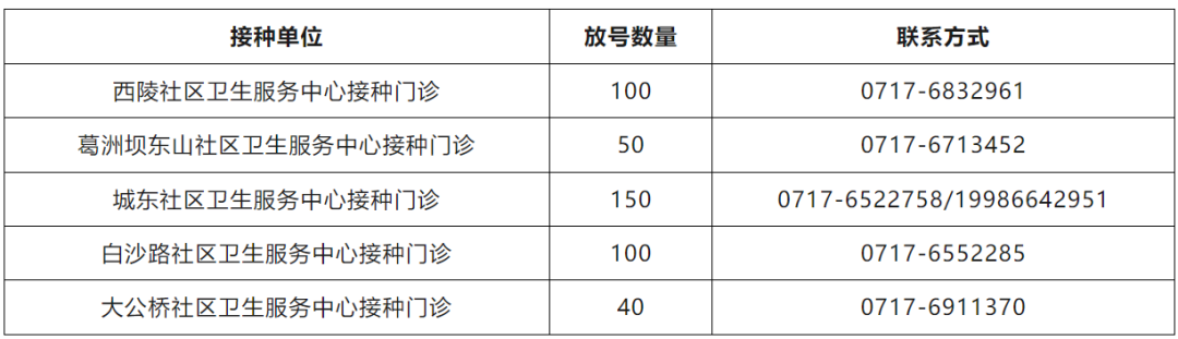 面对9-24岁及40-45岁人群,宜昌市城区五家门诊开辟了绿色通道,共440份,符合条件者可到接种点登记接种,先到先得。