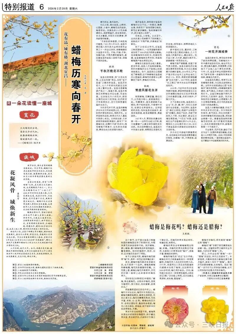 宜昌古称夷陵,素有“川鄂咽喉”之称,是巴楚文化交融之地,也是蜡梅原产地之一。本土花卉蜡梅见证了“三峡门户”2000多年的传承发展之路,从先民耕耘生息,到屈子行吟、长坂烽烟,花开花谢千百次,默默守望古城成长。蜡梅不仅为宜昌带来醉人景观和自然意趣,也将城市人文与自然禀赋深度融合,成为城市精神的重要载体。
